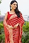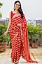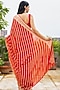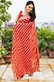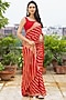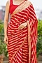Featuring a red saree in georgette base with zari stripe detail. It is paired with a semi-stitched blouse. Accentuate it with diamond jewellery and block heels for sangeet, engagement ceremonies or weddings.