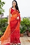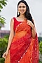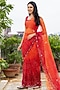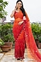 Featuring a red and orange bandhani saree in georgette base. It is paired with a semi-stitched blouse. Accentuate it with diamond jewellery and block heels for sangeet, engagement ceremonies or weddings.