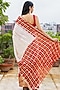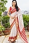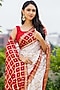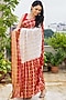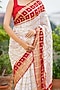 Featuring a red and white saree in georgette base with zari detail. It is paired with a semi-stitched blouse. Accentuate it with diamond jewellery and block heels for sangeet, engagement ceremonies or weddings.