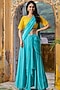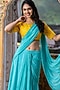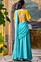 Featuring a sky-blue draped saree in chinon and net base. It is paired with a handwork blouse. Style it with dangler earrings and heels for a cultural event, mehendi, sangeet, engagement or wedding ceremony.