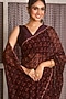 Featuring a wine saree in organza and upada silk base with print. It is paired with a blouse. Style it with dangler earrings and heels for a festive occasion, cultural event or sangeet ceremony.