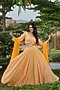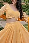 Featuring a yellow chikankari lehenga in georgette base. It is paired with a matching blouse and a dupatta.