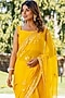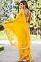 Featuring a yellow saree in silk base with sequins and mirror embellishment. It is paired with an unstitched blouse piece. Accentuate it with diamond earrings, a potli bag and block heels for a wedding or a haldi ceremony.