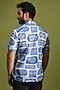 Featuring a white and blue shirt in pure cotton base with a cuban collar and digital print.