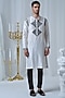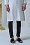 Featuring an off-white kurta in chanderi base with thread work. It is paired with stretch cotton satin pants. Perfect for a wedding or festive ceremony.