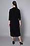 Featuring a black dress in corduroy base with a stand collar and metal embellishments. Accentuate it with statement jewellery and juttis for evening wear.