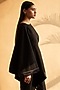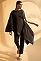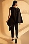 Featuring a black asymmetric tunic in cotton base with poncho sleeves and satin detail. It is paired with matching pants.