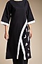 Featuring a black criss-cross tunic in cotton base with alphabetic detailing. It is paired with matching pants.