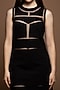 Featuring a black knitted dress in king roma and net base with pattern detailing and round neckline. It is paired with short knitted slip. Style it with a pair of mules and a statement jewellery.