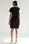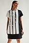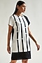 Featuring a white and black shift dress in cotton base with satin strip details and alternate sleeves.