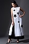 Featuring a white sleeveless tunic in pure cotton base with a mandarin collar, floral applique details and front slits. It is paired with black flared palazzo pants. Style it with dangler earrings and heels for brunch or office wear.