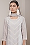 Featuring a grey kurta in silk chanderi in silk chanderi base with handcrafted pearl embroidery. It is paired with matching scalloped straight pants and an organza dupatta having latkans.