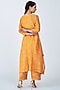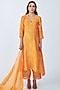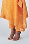 Featuring an orange kurta in chanderi base with print and lace detailing. It is paired with matching palazzo pants and a scarf having thread hand embroidery.