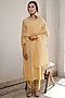 Featuring a yellow kurta in silk chanderi in silk chanderi base with handcrafted pearl embroidery. It is paired with matching scalloped straight pants and an organza dupatta having latkans.
