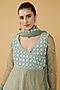 Featuring a green anarkali in silk tissue base with beads embroidery. It is paired with silk crepe pants and silk organza embroidered dupatta. Perfect wear for a mehendi or festive occasion.