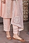 Featuring a peach straight kurta in pure silk chanderi base with machine and hand embroidery. It is paired with matching bosky satin pencil pants, an organza dupatta and a potli bag.