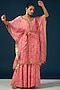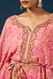 Featuring a pink kaftan in silk georgette base with digital floral print and hand embroidery. It is paired with matching sharara pants and a belt.