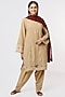 Featuring a beige kurta in cotton base with zardosi embroidery. It is paired with matching salwar pants and a contrasting dupatta.