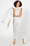 Featuring a white jacket in cotton linen base with flap pockets and hand embellishments. It is paired with a matching blouse and straight pants.