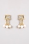 Featuring a pair of gold finish dangler earrings studded with water pearls, set in brass. Perfect for occasions like weddings and traditional festivities.