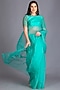 Featuring a deep mint saree in silk organza base. It is paired with a matching zardosi hand embroidered raw silk blouse.