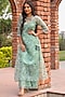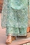 Featuring a jade green kurta in organza base with cutdana and sequins embroidery, including tropical print. It is paired with matching pants.