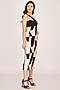 Featuring a black one-shoulder midi dress in silk base with abstract design. Elevate your wardrobe with this versatile piece that seamlessly transitions from casual weekend outings and stylish brunches to evening soirees and cocktail parties with unparalleled grace.