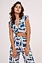 Featuring a blue crop op in muslin base with geometric print. It is paired with matching pants.