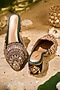 Beige Crepe Mirror & Sequin Embroidered Mule Heels