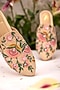 Featuring a pair of beige mules in satin base with multi-colored thread and cutdana embroidery. It has a suede underlining. Perfect way to spruce up both casual and dressy looks.
