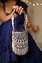 Blue Satin Crystal Embroidered Bucket Potli Bag
