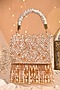 Featuring a cream clutch in satin base with cutdana, stones, beads, pearl drops, pearls and glass-beaded embellishments. It has a suede lining.