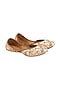 Featuring a pair of gold juttis in silk base with glass crystals, beads, and stone embellishments. It has a pure leather underlining.