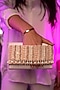 Featuring a gold clutch in faux croco leather base with beads, pearl drops, pearls and glass beaded embellishments. It has a suede lining.
