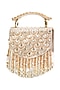 Featuring a gold clutch in french crepe base with a beads, bugle beads, and crystals hand-embroidered flap. It has a detachable chain and suede lining.
