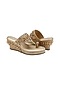 Featuring a pair of golden wedges in dupion silk base with beads, bugle beads, sequins, cutdana, and crystals embellishments. It has a vegan leather underlining, TPR sole, and 3 inch heels.