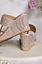 Featuring a pair of rose gold wedges in shimmer banana crepe base with crystal, bugal beads, sequins and cutdana embellishment. It has a vegal leather lining, a TPR sole and 3-inch heels. Perfect wear for a wedding or festive occasion.