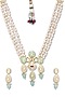 Featuring a gold finish handcrafted necklace studded with kundan polki, agate, and onyx tumbles, set in brass. It is paired with a matching pair of earrings.