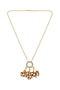 Featuring a gold finish necklace studded with kundan polki, agates, onyx tumbles and pearls, set in brass.