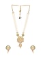Featuring a gold finish long necklace studded with pearls, set in brass. It is paired with a matching pair of earrings.