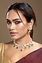 Featuring a gold finish necklace studded with moissanite kundan polki, synthetic ruby, cubic zirconia and onyx, set in brass. It is paired with a matching pair of earrings. Perfect to wear with Indian, Indo-western, as well as western outfits, a beautiful fusion of modern and traditional jewellery.