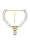 Featuring a micro gold finish choker necklace studded with kundan polki, agate and onyx tumbles, set in brass. Perfect wear for wedding celebrations or grand events.