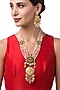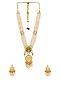 Featuring a micron gold finish handcrafted temple necklace studded with kundan polki, pearls, and beads, set in brass. It is paired with a matching pair of earrings.