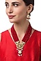 Featuring a micron gold finish handcrafted necklace studded with kundan polki, pearls, and beads, set in brass. It is paired with a matching pair of earrings.