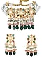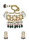 Featuring a micron gold finish choker necklace studded with kundan polki, agates and onyx tumbles, set in brass. It is paired with a matching pair of earrings.