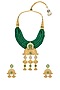 Featuring a micron gold finish choker necklace studded with kundan polki, agates and onyx tumbles, set in brass. It is paired with a matching pair of earrings.