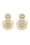Featuring a pair of micron gold finish dangler earrings studded with kundan polki, agates and onyx tumbles, set in brass.