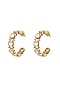 Featuring a pair of micron gold finish hoop earrings studded with moissanite kundan polki, agate stones and cz diamonds, set in brass. Perfect for grand occasions like weddings and traditional festivities.