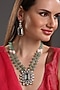 Featuring a two-tone finish long necklace studded with kundan polki, agate and onyx tumbles, set in brass. It is paired with a matching pair of earrings. Perfect wear for wedding celebrations or grand events.