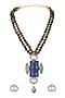 Featuring a two tone finish necklace studded with kundan polki, cubic zirconia, jasper and onyx, set in brass. It is paired with a matching pair of earrings. Perfect to wear with Indian, Indo-western, as well as western outfits, a beautiful fusion of modern and traditional jewellery.